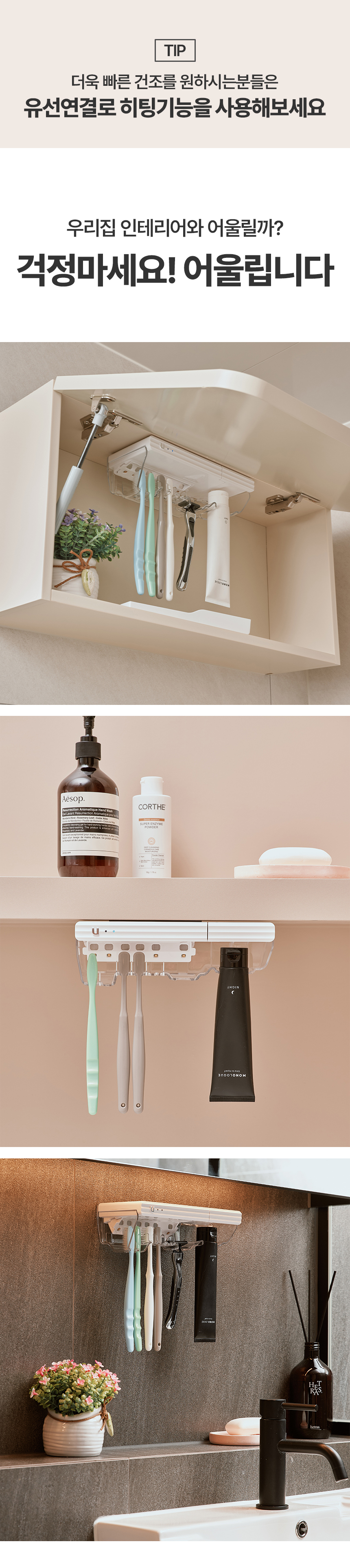 [유토렉스] 프리미엄 다목적 빌트인 각도조절 UV 히팅 건조 칫솔살균기 URT-143CHW