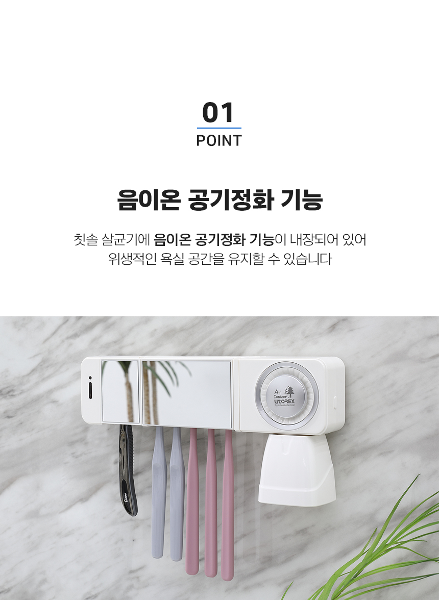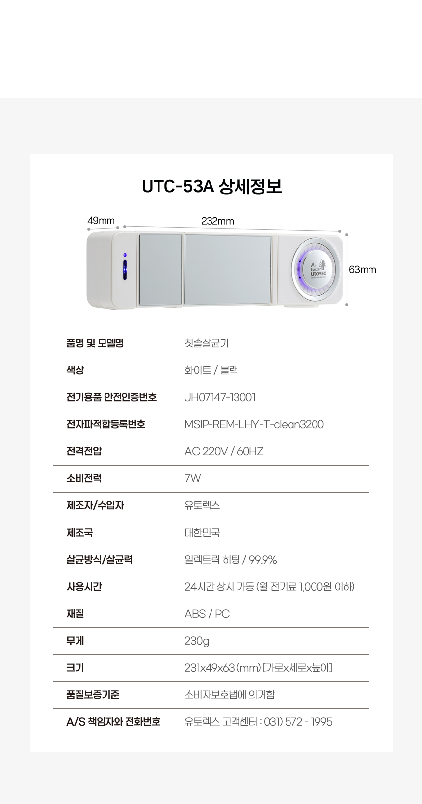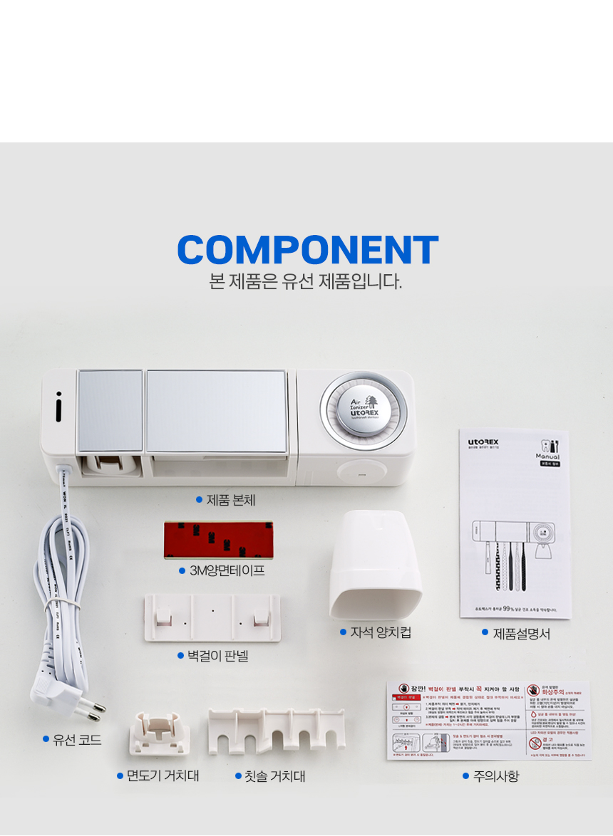 [유토렉스] 욕실 공기청정 탈취 헤드형 칫솔건조살균기 UTC-53A