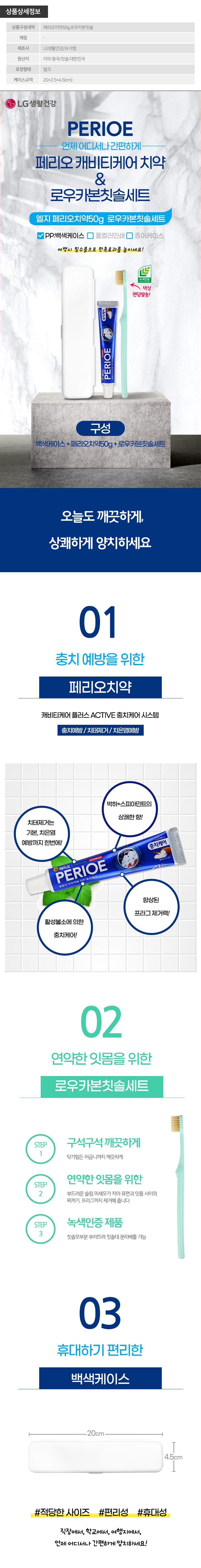 (PP,백색)엘지 페리오치약50g 로우카본칫솔세트