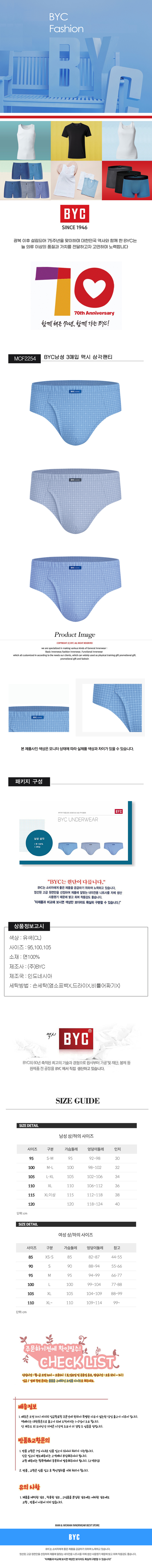 BYC남성 3매입 맥시 삼각팬티 F2254