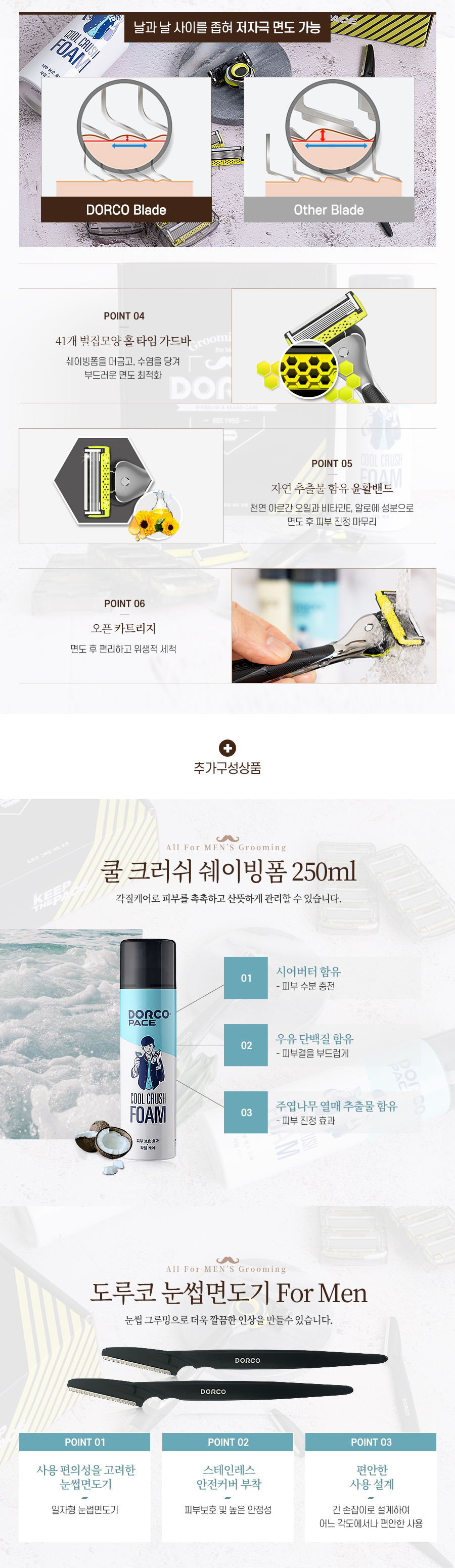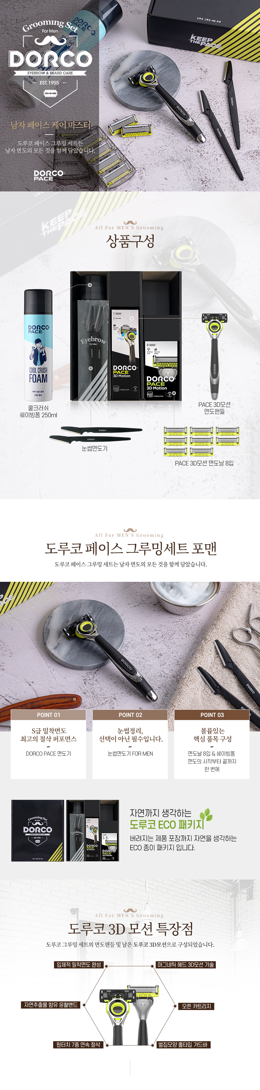 [도루코] PACE7 3D그루밍 세트 올리브영 입점모델 (면도기+ 면도날 9입+ 쉐이빙폼 250ml + 눈썹면도기2
