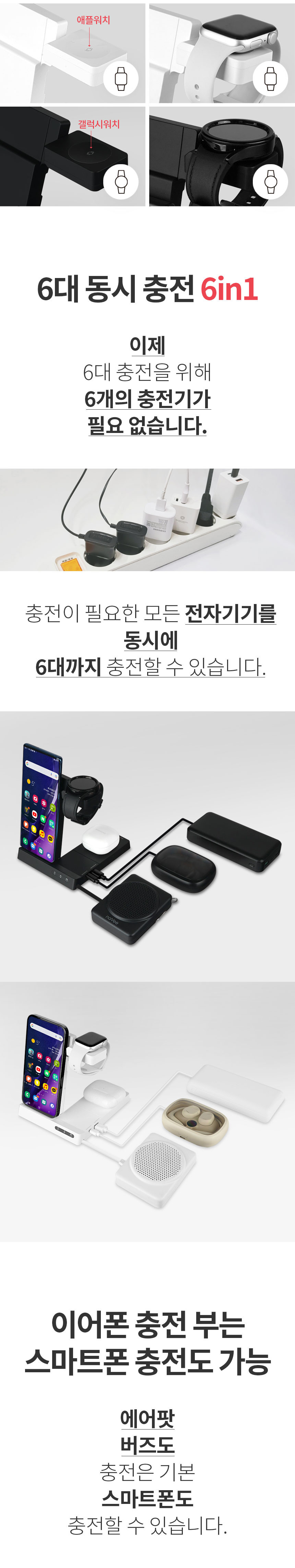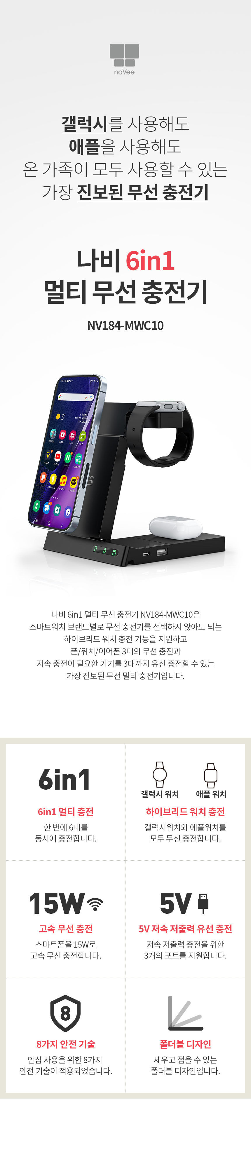 나비 NV184-MWC10 6IN1 멀티 무선 충전기 애플 갤럭시 워치 에어팟 버즈