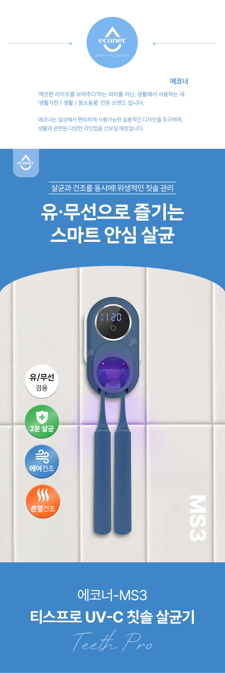 에코너-MS3 티스프로 UV-C 칫솔 살균기