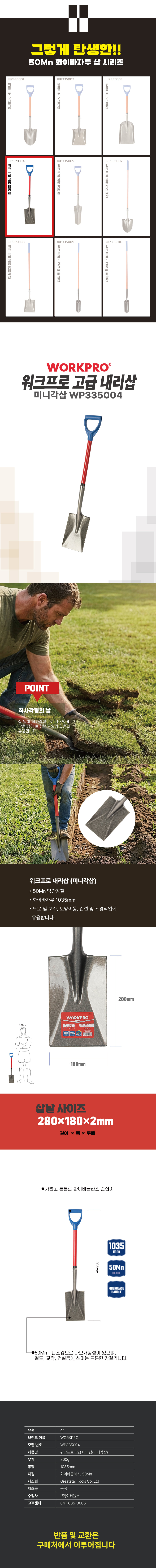 워크프로 고급 내리삽(미니각삽)(망간강철 50Mn) WP335004