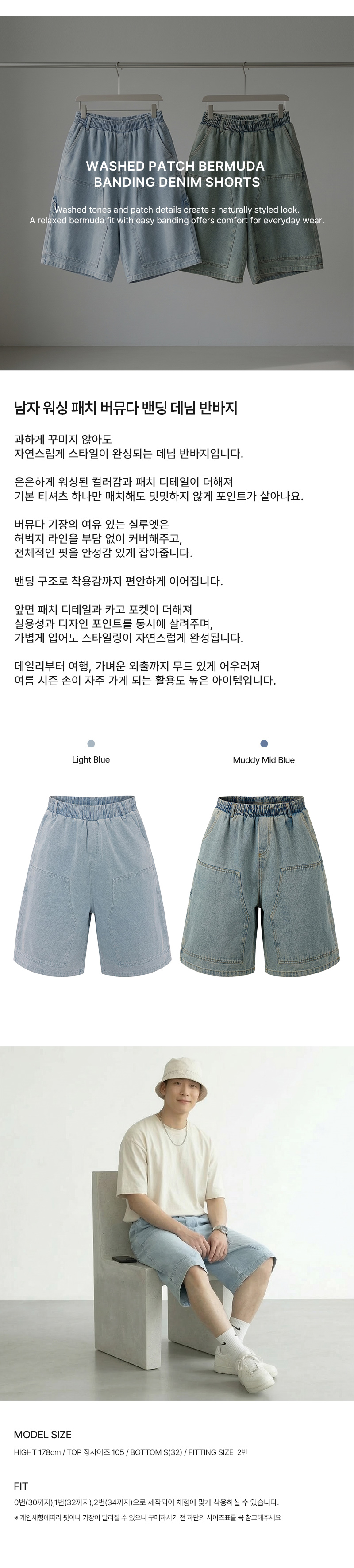 남자 버뮤다 워싱 패치 밴딩 데님 반바지DJ-JEH-SACC2008M