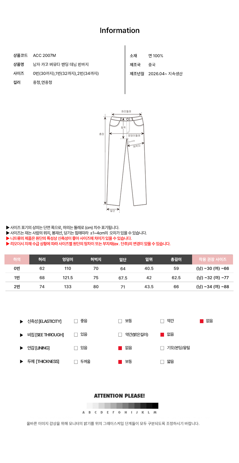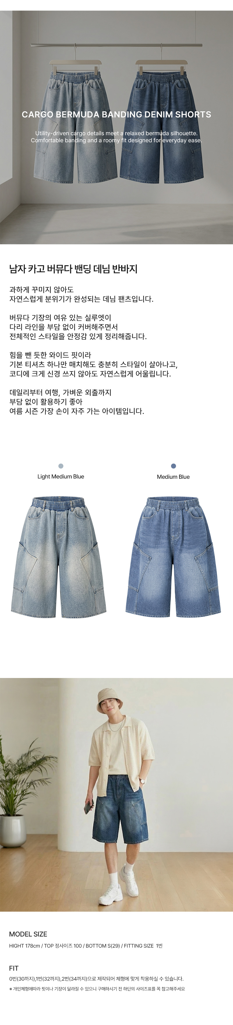 남자 카고 버뮤다 데님 밴딩 반바지 DJ-JEH-SACC2007M