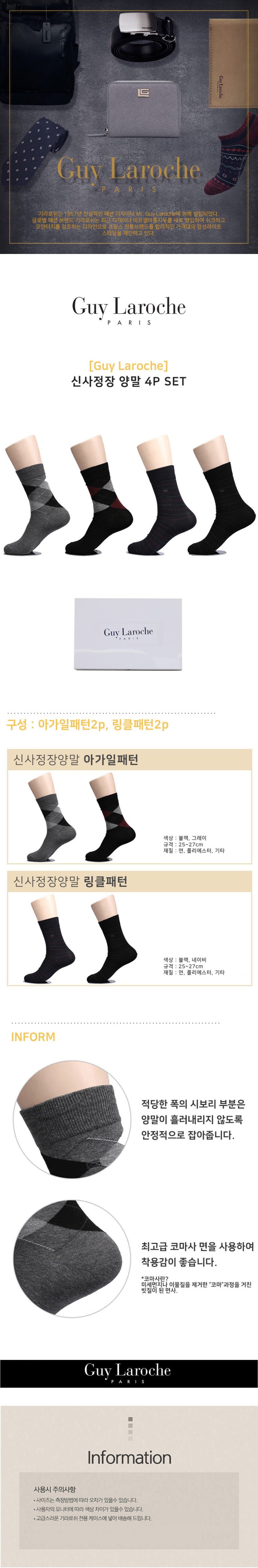 [기라로쉬] 신사 정장양말 4P SET GL-S-AR4(아가일+링글)
