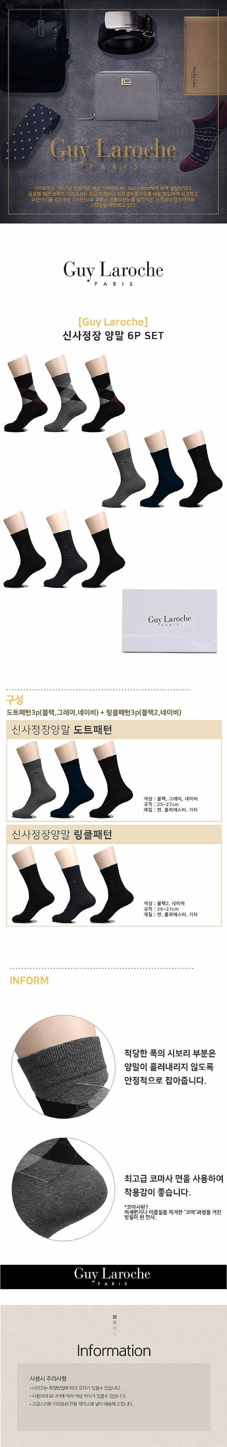 [기라로쉬] 신사 정장양말 6P SET GL-S-DR6(도트+링글)