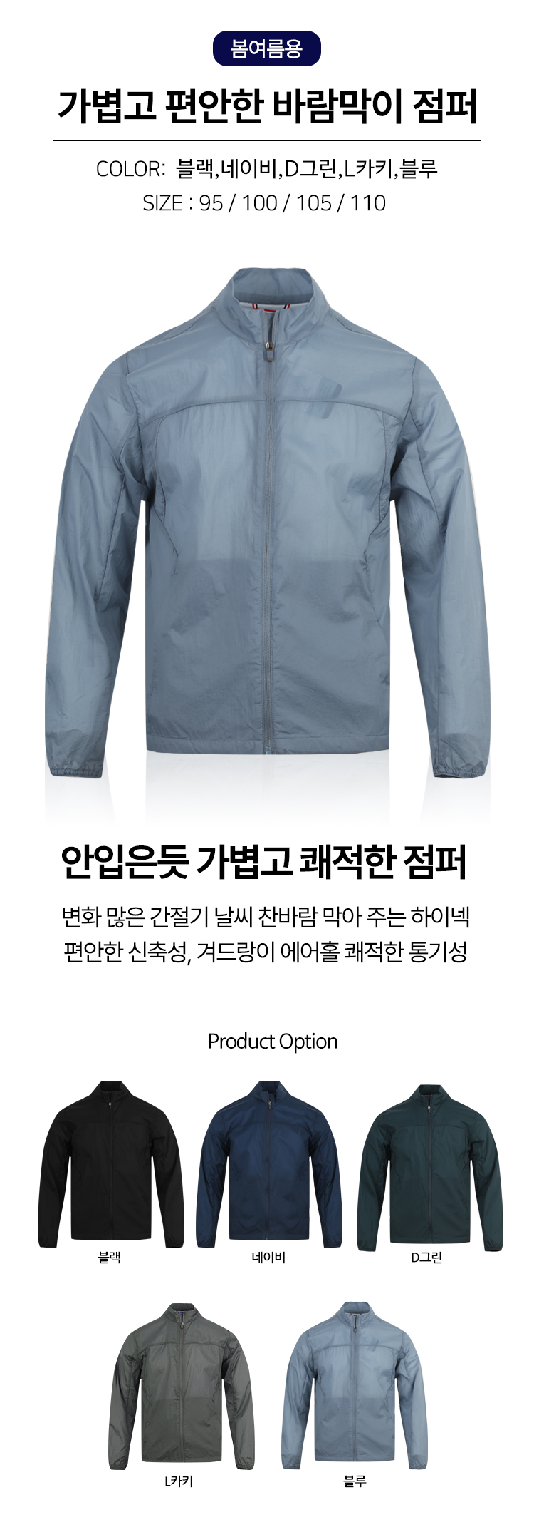 남자 봄여름 다용도 방풍 바람막이 등산 집업점퍼 DD-JU-5110